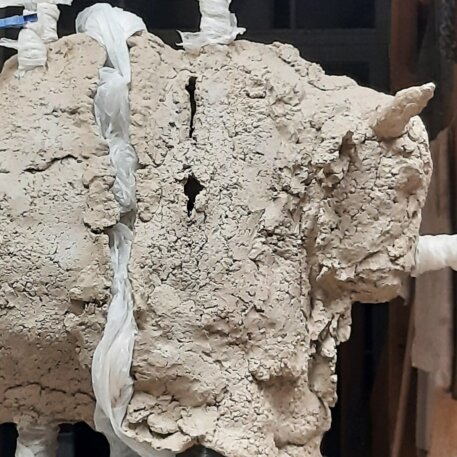 In der Altsteinzeit, als der Mensch begann, sich künstlerisch auszudrücken, durch Malerei, Skulptur oder Musik, lebte er in Europa in einer Welt der kalten Tundren, die von riesigen Tierherden besiedelt war. Sie stellten für ihn gleichermaßen Nahrungs- und Rohstoffquelle wie lebensgefährliche Bedrohung dar. Vorgeschichtliche Tierdarstellungen, ob Skulptur oder Höhlenmalerei, zeugen von der engen Verbindung zwischen Urmensch und Wildtier. Ich möchte, dass meine Skulpturen die Betrachtenden auf einer emotionalen, instinktiven Ebene ansprechen, sie zurückversetzen in die Zeit des prähistorischen Menschen und eine Brücke zum Unbewussten schlagen, das seine Wurzeln in unseren Ursprüngen bewahrt hat.